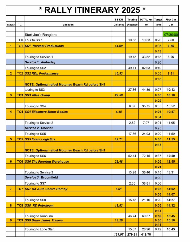 Approx 140km of stages awaits the competitors after the Ceremonial Start at Lone Star Restaurant Manchester Street on Saturday afternoon before heading north on Sunday Morning including the infamous Forest Stage Mt Grey road run both uphill in the morning and downhill in the afternoon through Ashley Forest, popular North Canterbury public roads such as Happy Valley Rd, Onepunga Rd and Ram Paddock Rd and following last years hugely popular spectator stage to finish the rally a multi-lap blast round Euromarque Motorsport Park (Ruapuna Raceway) before Finishing again at Lone Star Restaurant Manchester Street.