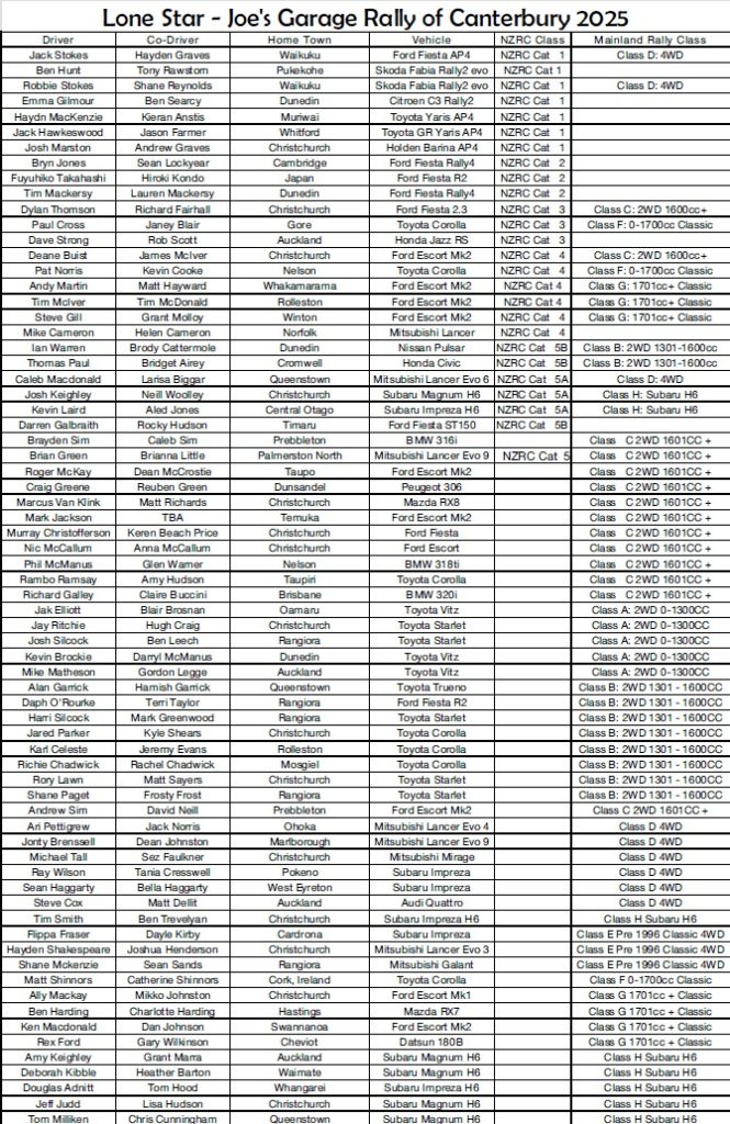 The Lone Star Rally of Canterbury 2025 will be held on Sunday 1st June as part of the New Zealand Rally Championship and based on North Canterbury.